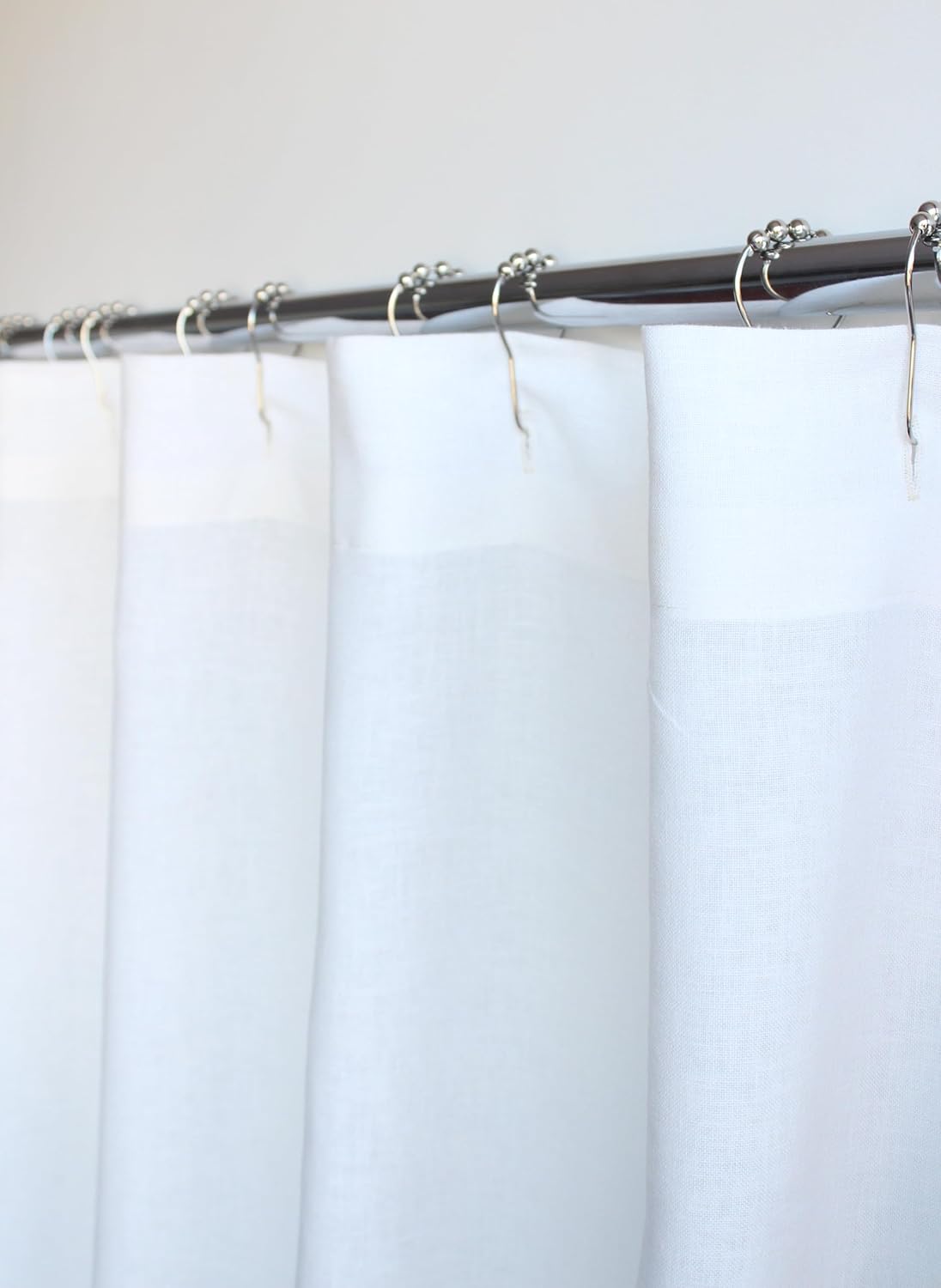 Includes one shower panel. Buttonhole top (hooks are not included) Without waterproof liner. Shabby chic look, curtain panel will add comfort and elegance to your bathroom. This curtain does not have a waterproof liner, but will do a great job of keeping water out of the bathroom floor. Handmade from 100% linen, it dries very quickly while maintaining its beautiful appearance. Kindly note in reality, the color may be brighter or darker, depending on the resolution and technical capabilities of your computer
