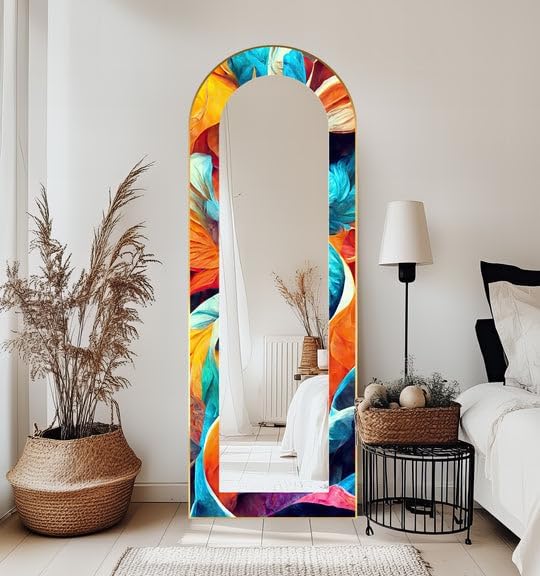 Arch Shaped Floor Mirror with Metal Frame – Gold, Black, or Silver | Leaning, Standing, or Wall-Mounted Full Body Mirror Add artistic charm and functional elegance to your space with our Arch Full Length Mirror, designed to make a bold statement in any room. Whether styled in a bedroom, hallway, or living room, this arched floor mirror enhances your interior with timeless beauty. The edges of the mirror consist of pictures in the colors of your choice printed on tempered glass using the UV printing technique. The mirror itself is mounted on top of this printed tempered glass, giving it a vibrant, durable, and luxurious finish that stands out in any setting. Measurements; TOTAL SIZE (Uv Printed Tempered Glass + Mirror) : 23,5’’W x 67’’ H ONLY MIRROR SIZE : 17’’W x 60,5’’ H Choose from three premium frame finishes—Arch gold mirror, sleek black, or arch floor mirror silver—and enjoy flexible use as a Standing Floor Mirror, Arched Wall Mirror, or casually leaned for a designer look. This is more than a Full Body Floor Mirror with Stand—it’s a piece of functional art. Multiple Placement Methods, This arched floor mirror comes with a U-shaped bracket, which you can freely place in the living room or bedroom. For your convenience in hanging on the wall, special hangers are designed on the back of the mirror.Our premium mirrors are crafted by gluing 4mm tempered glass to a 4mm mirror, combining durability and style. The tempered glass features UV printing for a glossy, vibrant look, while both the glass and mirror have smooth, grinded edges for safety. The hidden metal hanger ensures a sleek, ready-to-hang design, making it an elegant and functional addition to any room.
