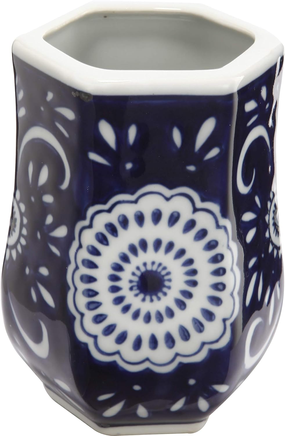 A&B Home 4 Piece Blue & White Ceramic Bathroom Set w/Soap Dispenser Toothbrush Holder Tumbler & Soap Dish