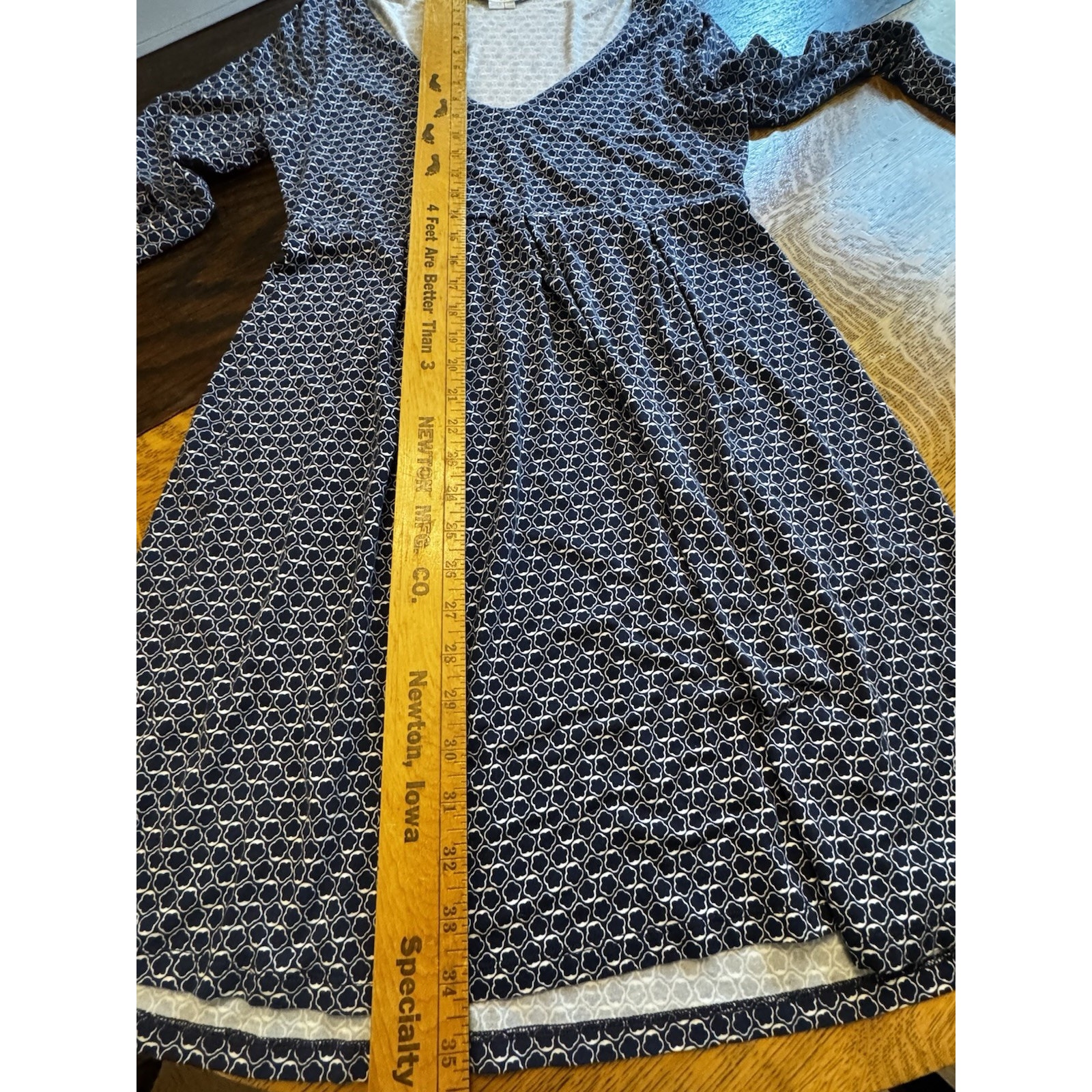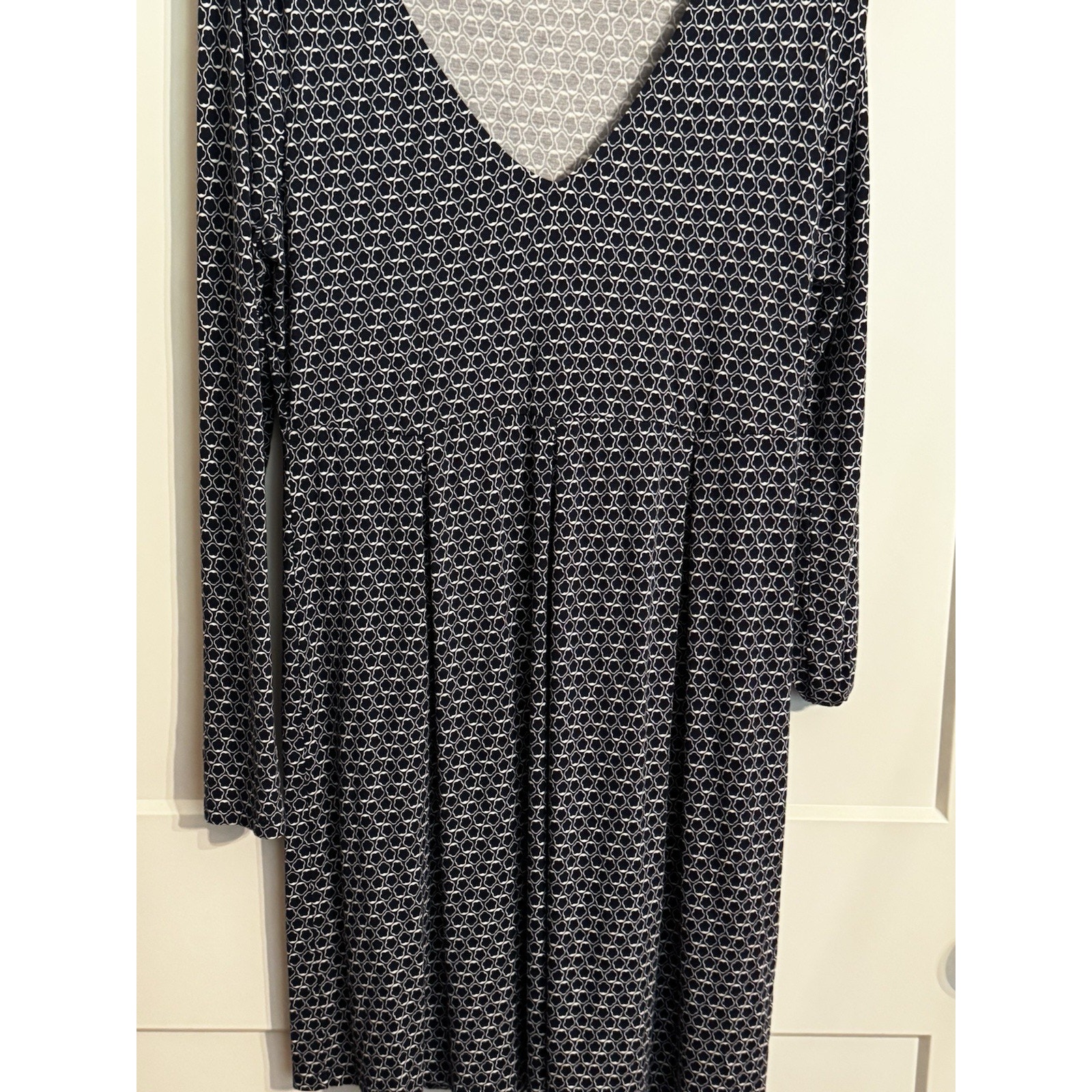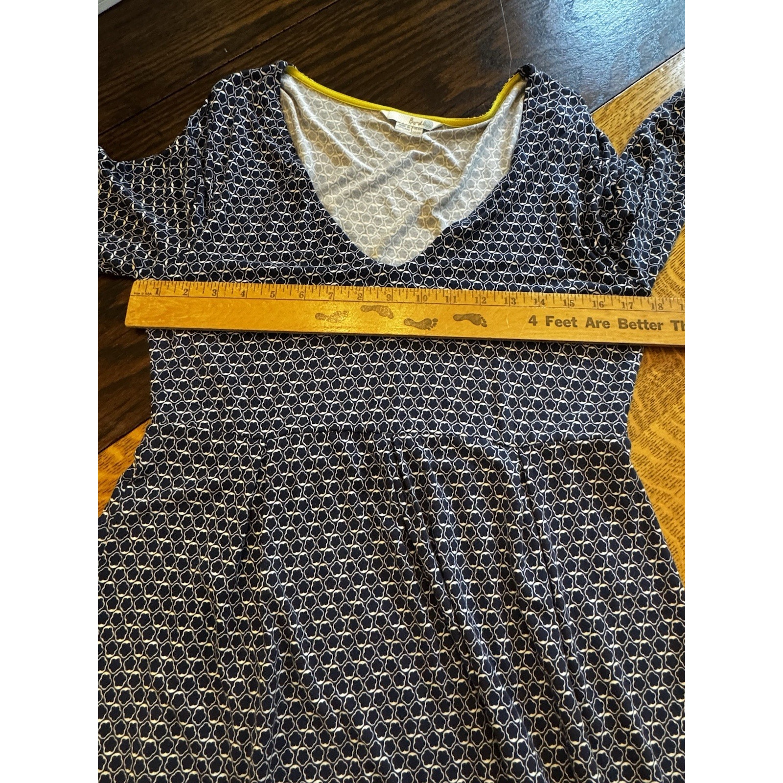 The Boden navy white dress in size 12 long is a comfortable and stylish knee-length shift dress made from jersey fabric. With a V-neckline and long sleeves, this boho lagenlook hippie sleep dress is perfect for casual occasions and travel during the summer, fall, and spring seasons. The pullover closure and regular size make it easy to wear for a relaxed and eclectic look. Made by the brand Boden, this dress is sure to become a versatile and favorite piece in any woman's wardrobe.