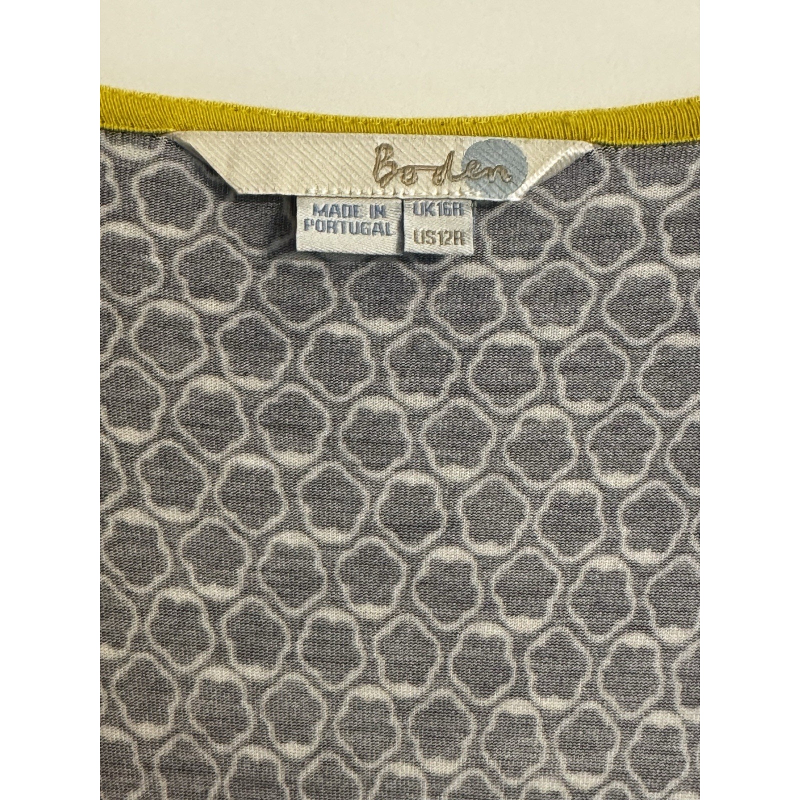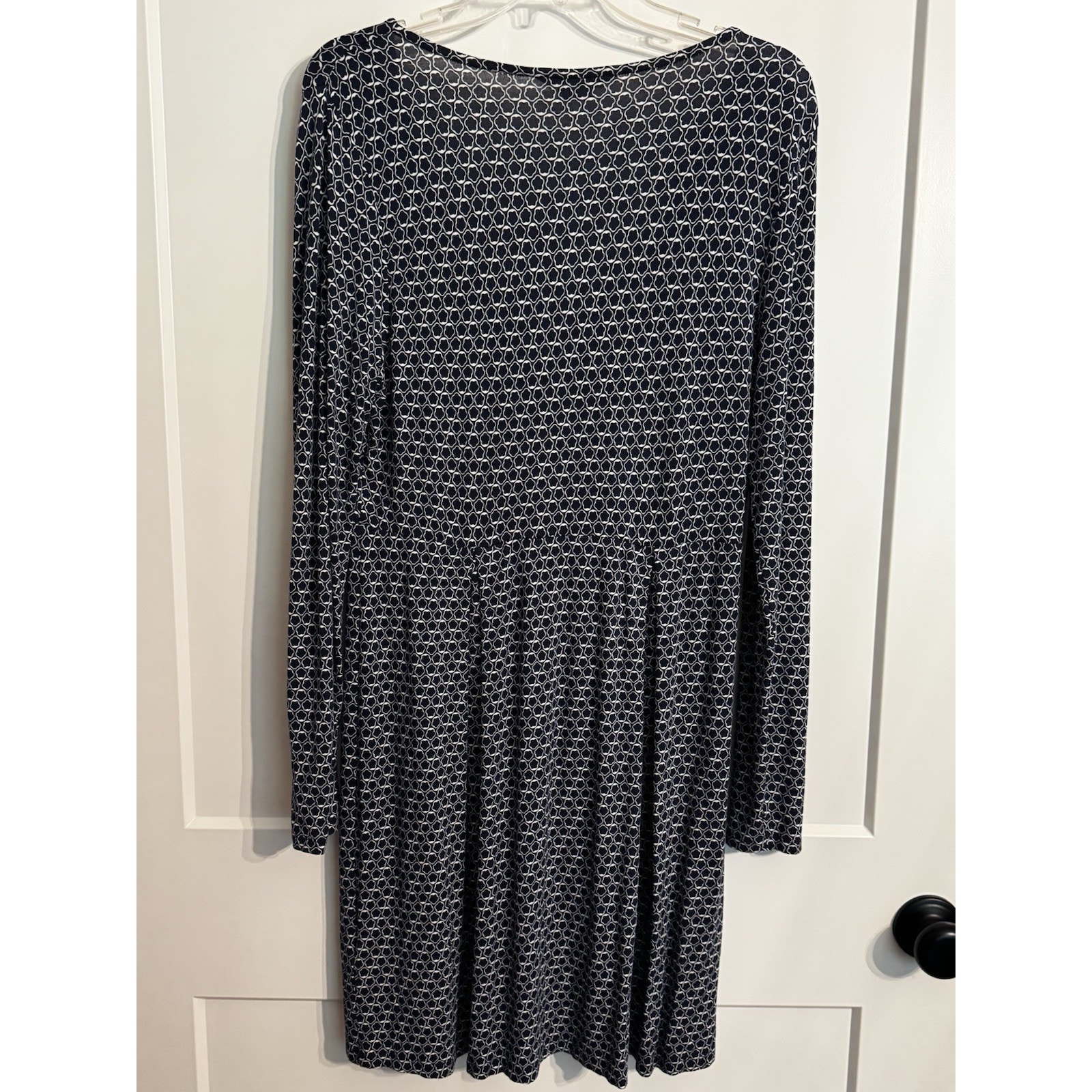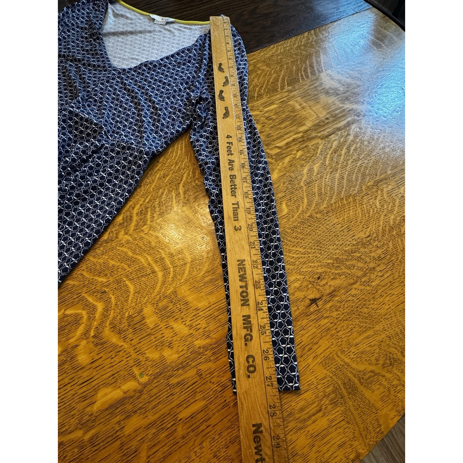 The Boden navy white dress in size 12 long is a comfortable and stylish knee-length shift dress made from jersey fabric. With a V-neckline and long sleeves, this boho lagenlook hippie sleep dress is perfect for casual occasions and travel during the summer, fall, and spring seasons. The pullover closure and regular size make it easy to wear for a relaxed and eclectic look. Made by the brand Boden, this dress is sure to become a versatile and favorite piece in any woman's wardrobe.