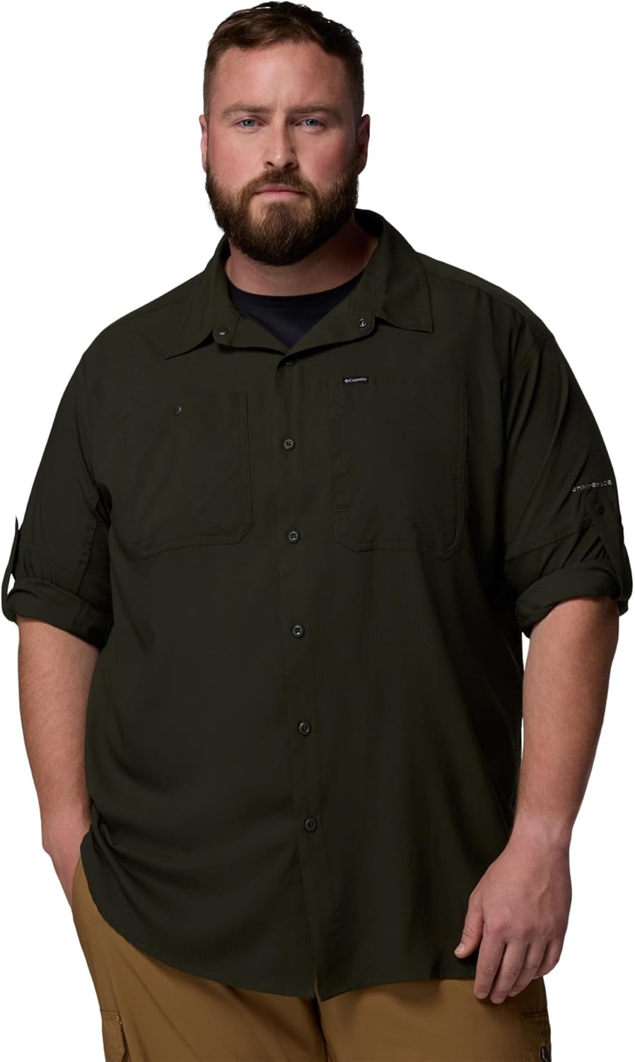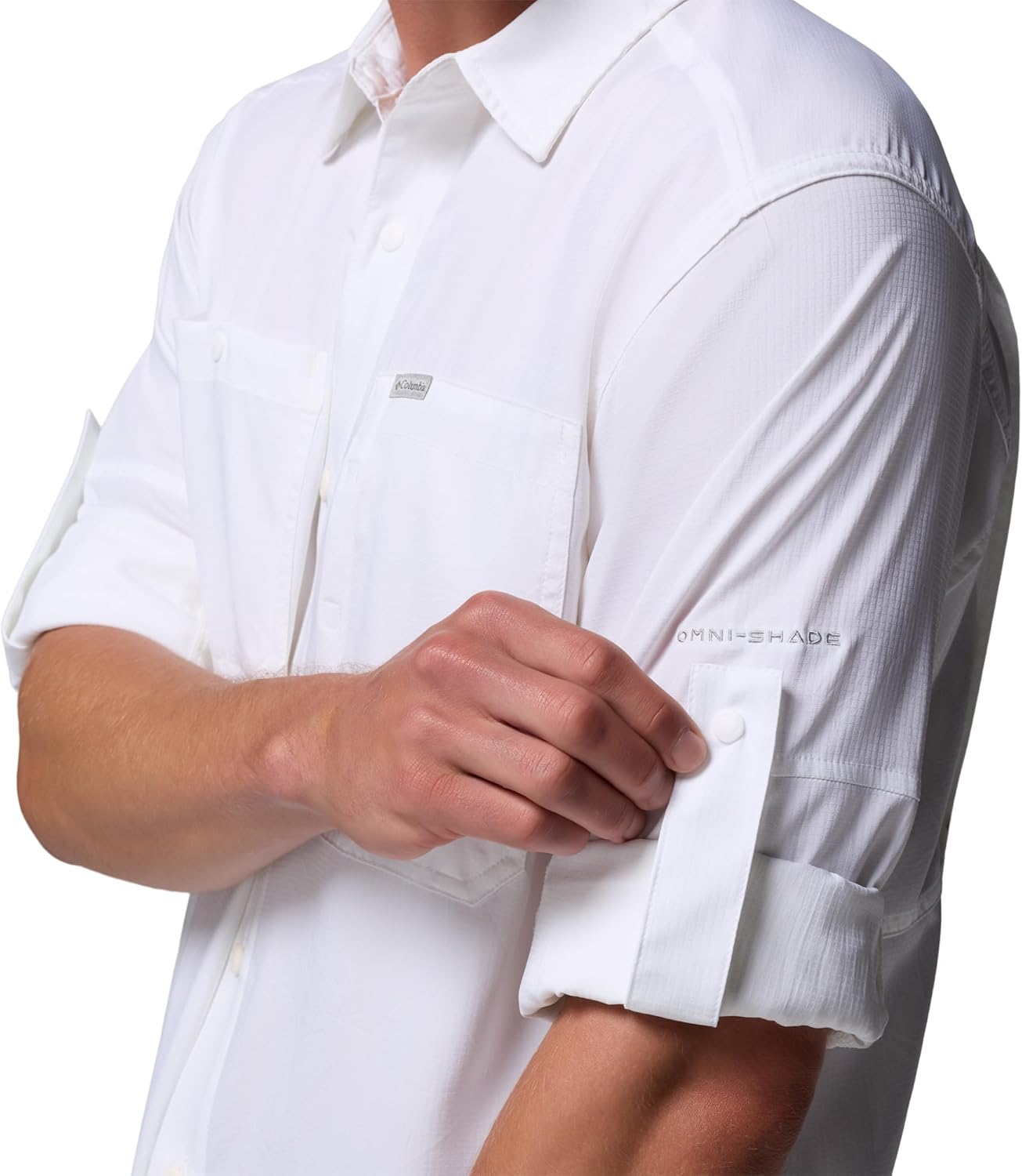 Designed to trek incredibly lightly, this vented button-down is made of 100% recycled polyester—so it holds its own against snagged branches and brambles. Omni-Shade UPF 50 sun protection provides coverage when there isn't a cloud in the sky. For non-stop comfort, Omni-Wick technology wicks perspiration and helps this shirt dry quickly, plus antimicrobial treatment keeps it fresh mile after mile. Features you'll love include roll-up sleeves, dual chest pockets, and a classic shirttail hemline. Columbia offers this long sleeve shirt in multiple colors and sizes. Extended sizing available. Regular Fit.