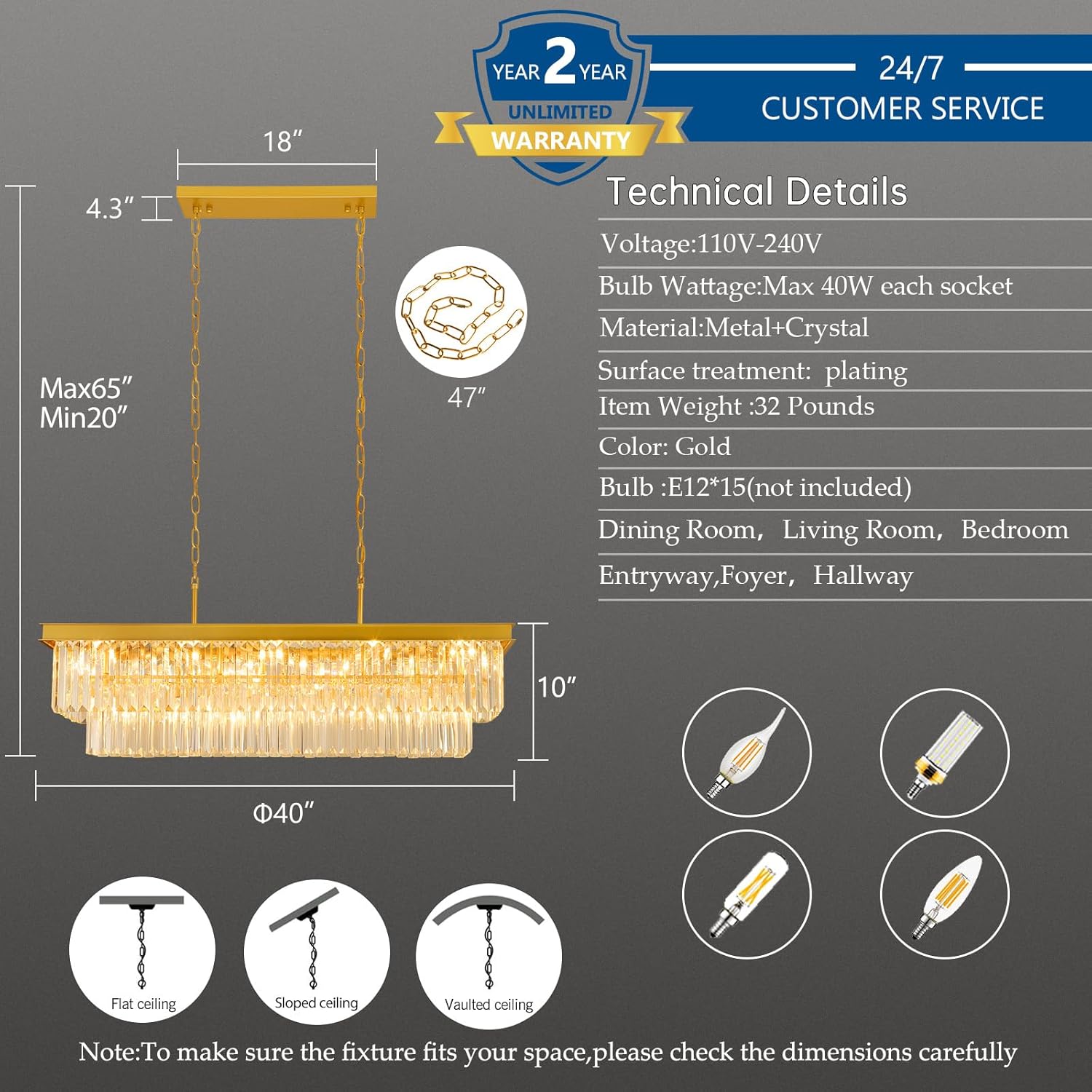 | Special Feature | Adjustabe height, Dimmable (If using a dimmable bulb), High quality K9 Crystal, Modern and classic design, Ideal for kitchen island, dining room, pool table |