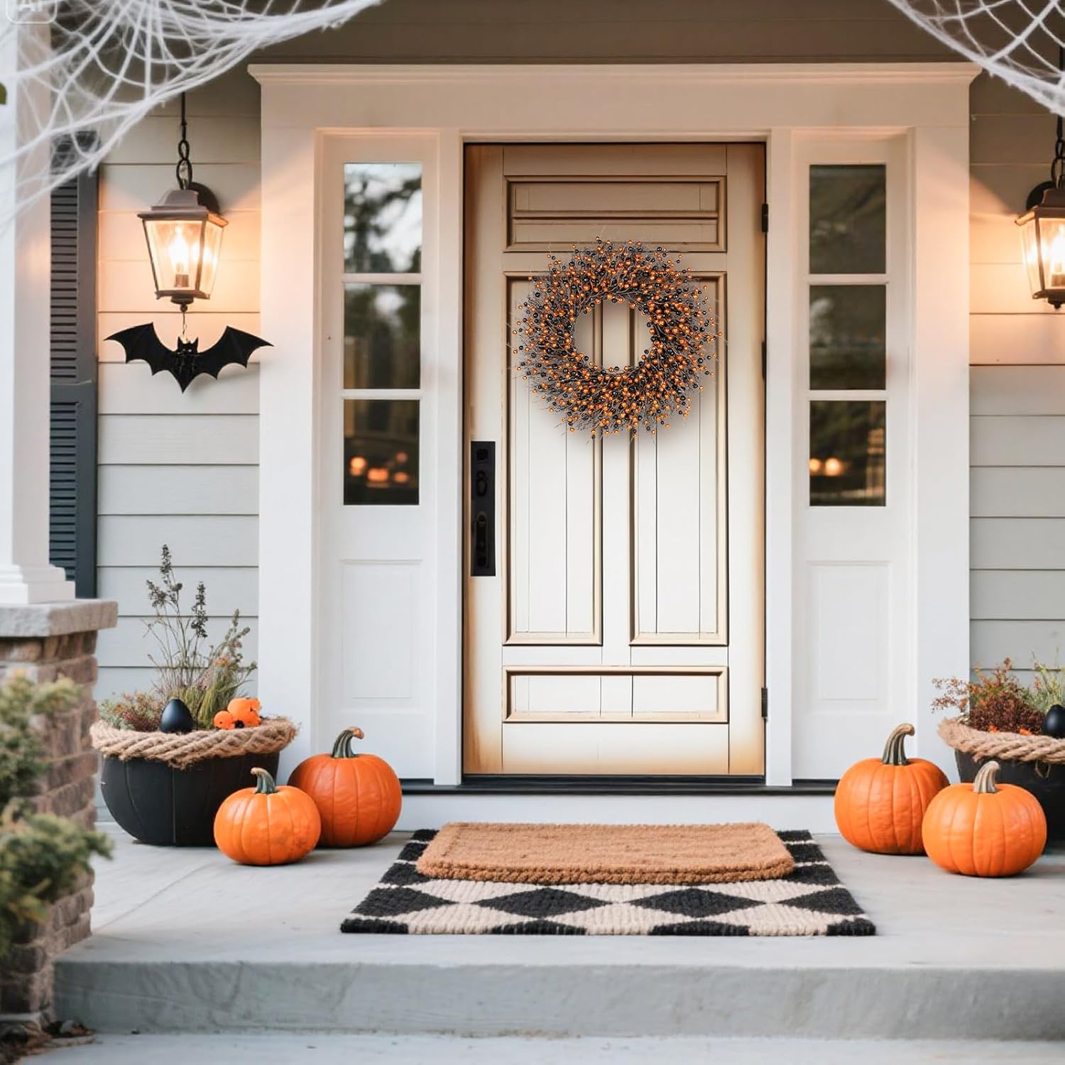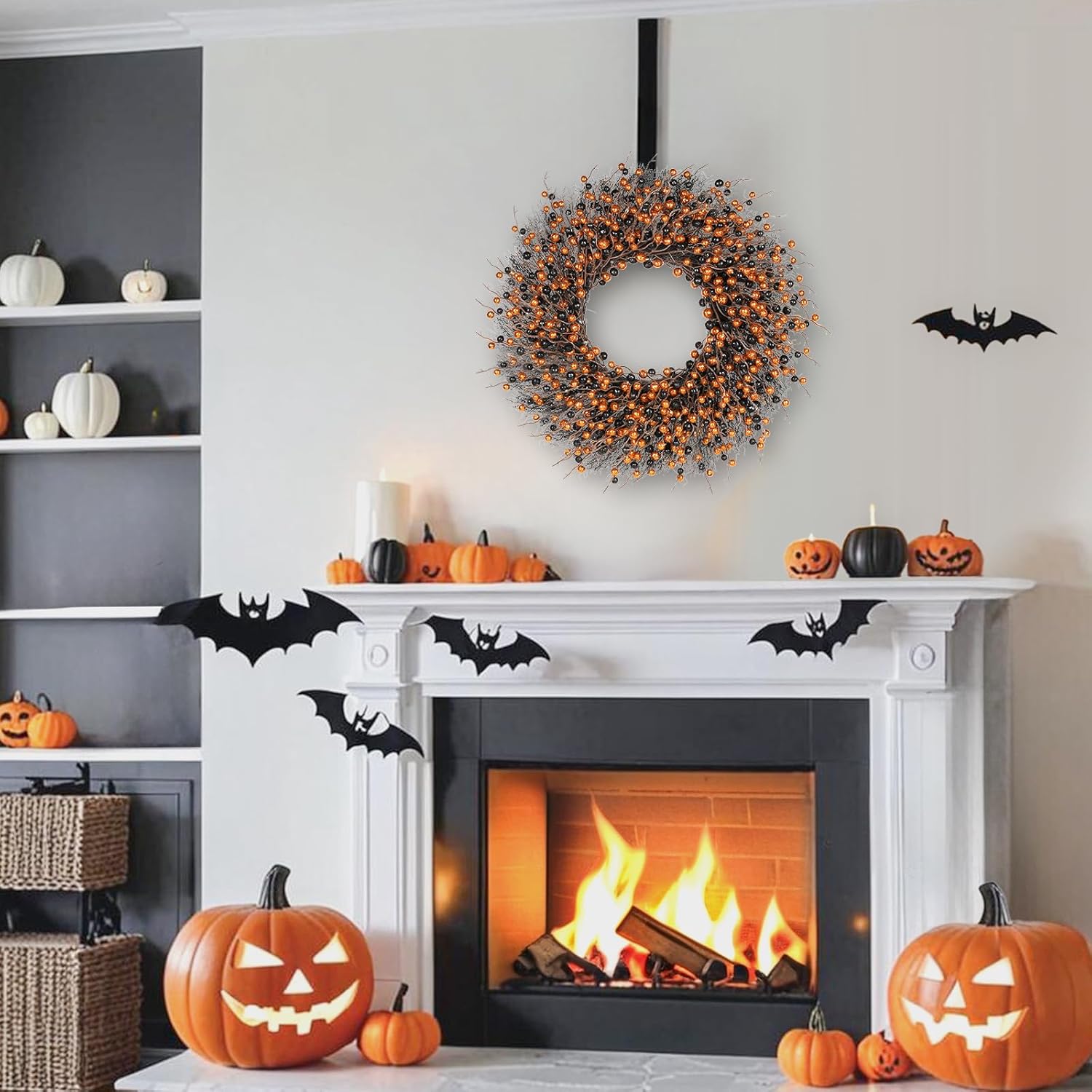 This **24-inch Halloween wreath** is the perfect **non-scary decor** for your **front door, porch, or mantel**, blending festive charm with elegant sparkle. Crafted with **black and orange berries, twigs, and shimmering glitter accents**, it adds a playful yet sophisticated touch to your **Halloween decorations* Ideal for **family-friendly homes**, this wreath avoids gory or frightening designs, making it great for **kids, seniors, and anyone who loves subtle Halloween vibes**. (Note: Small berries are not toys—keep away from children.) Whether you're hosting a **cozy fall gathering** or just sprucing up your entryway, this **Halloween front door wreath** brings **whimsical autumn magic** without the fright!