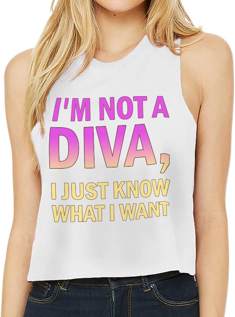 Cute and flattering I'm Not a Diva Racerback Cropped Tank is suitable for most indoor or outdoor activities, such as gym, yoga, running, hiking, beach or relaxing around the house. Pair Word Art Women's Tank with your favorite sports bras, especially strappy ones, and high-waisted leggings, then you will enjoy cool and comfortable exercise throughout the summer.