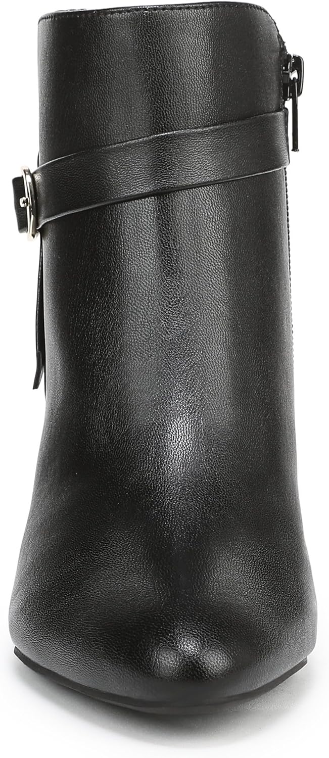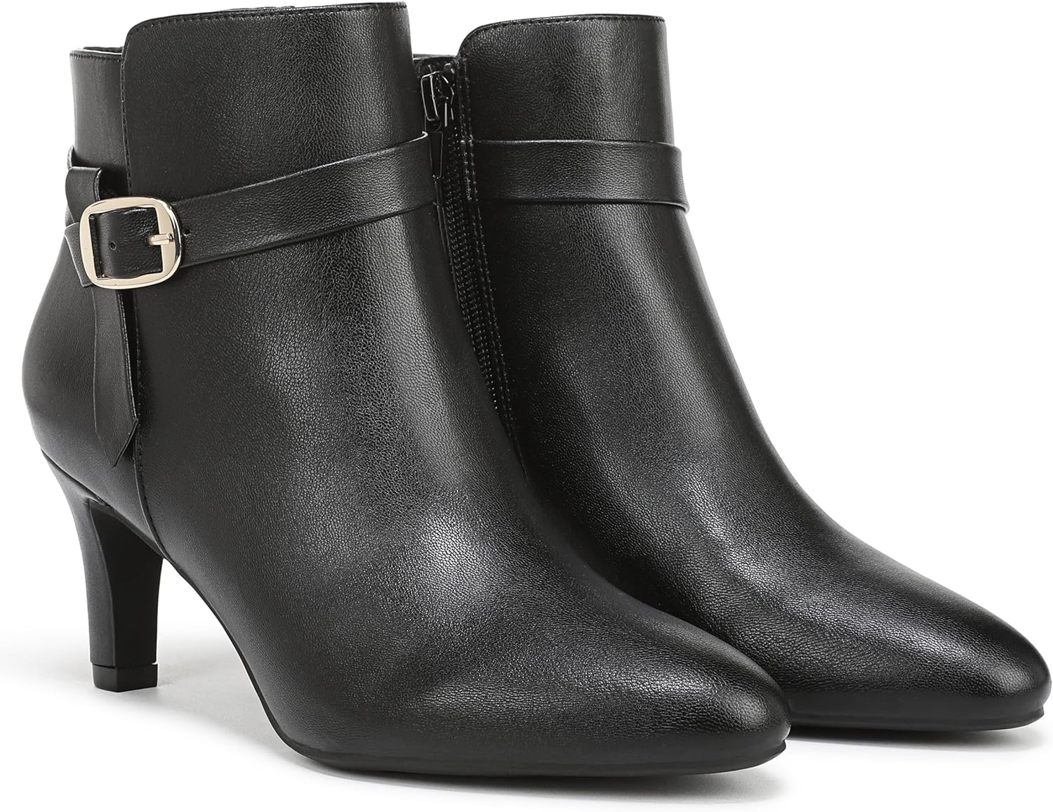 So sleek and chic, you’ll never want to take off this heeled dress bootie with a sophisticated strap and buckle detail. Faux leather upper with an almond toe, inside zip, and decorative strap and buckle detail. Trusted Soft System® comfort technology for unmatched cushion, support, and flexibility in every pair. Traction sole provides you with extra stability. Just Right Height 2 3/4 inch heel.