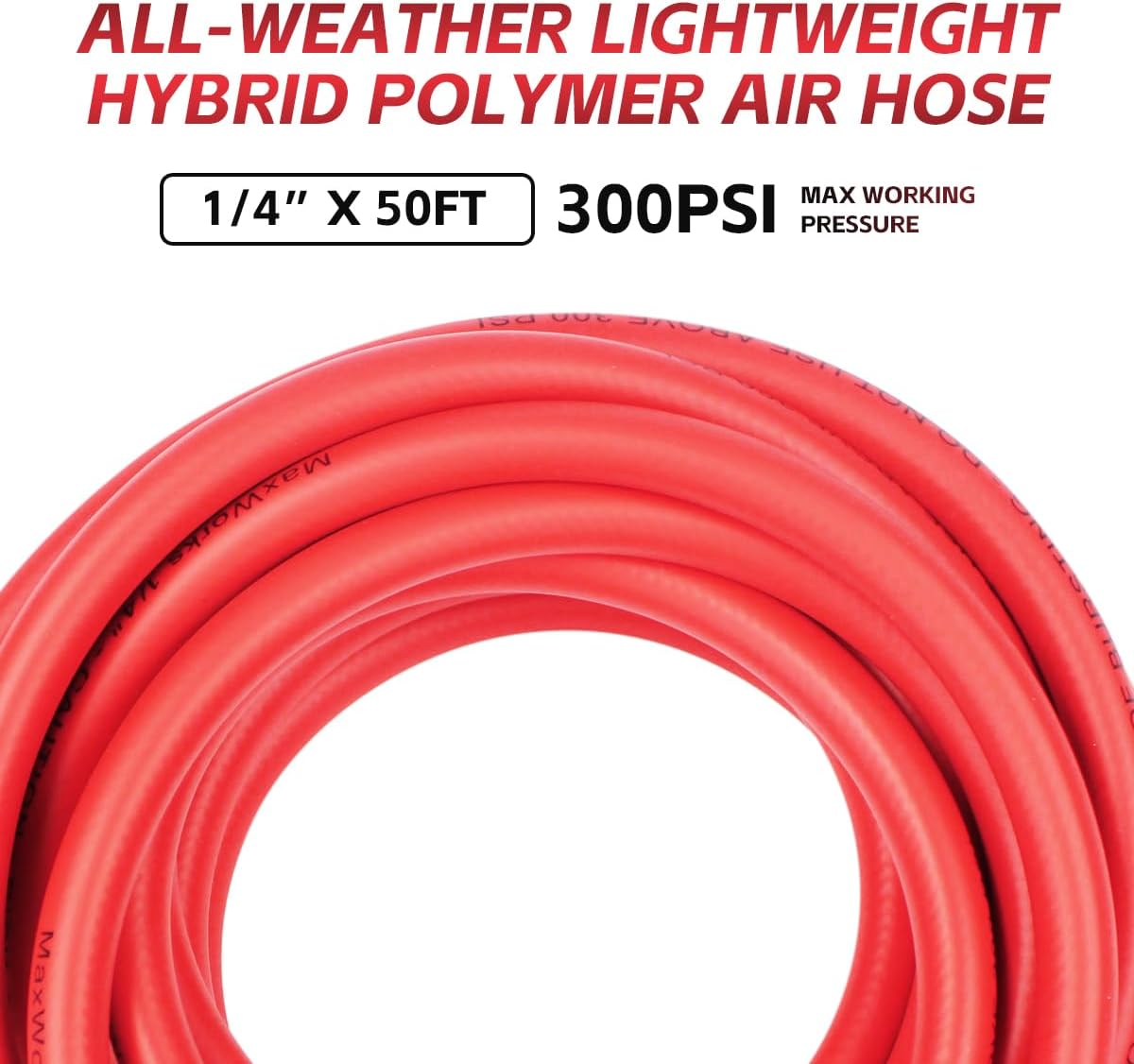 Our MaxWorks retractable air hose reel with 50' rubber air hose features a fully enclosed durable alloy steel spring that will provide years of service. Multi position ratchet release to easily roll up your retractable air hose. Can be mounted on your wall, floor or ceiling for versatility and convenience. Four non-snag rollers help reduce hose wear. Precision machined full flow swivel solid brass fittings. 250 max PSI holds up 50' of hose (included).