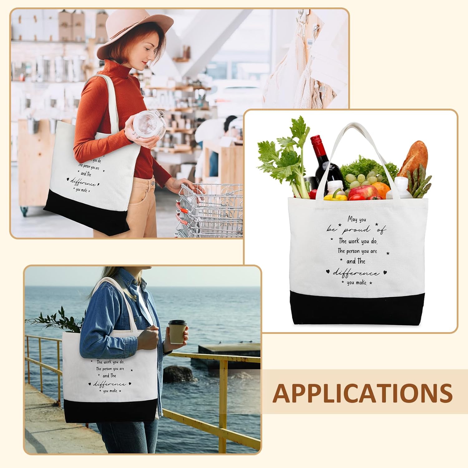 Features: With ample quantities and ideal combinations, our inspirational candles sets are suitable for gifting to your family members, neighbors, colleagues and classmates to show your appreciation for them. Our candles for daughter sets have a wide range of uses, suitable for weddings, birthday parties, family dinners, holiday parties, camping, shops, anniversaries and more. Specifications: Main material: Tote bags: canvas Candles: wax Main color: black and white Size: Tote bags: approx. 18.5 x 14.96 x 4.72 inches/ 47 x 38 x 12 cm Candles: approx. 2.56 x 2.44 inches/ 6.5 x 6.2 cm with the capacity of approx. 2.8 oz Package includes: 12 x Tote bags 12 x Candles Notes: Manual measurement, please allow slight errors on size. The color may exist a slight difference due to different screen displays.