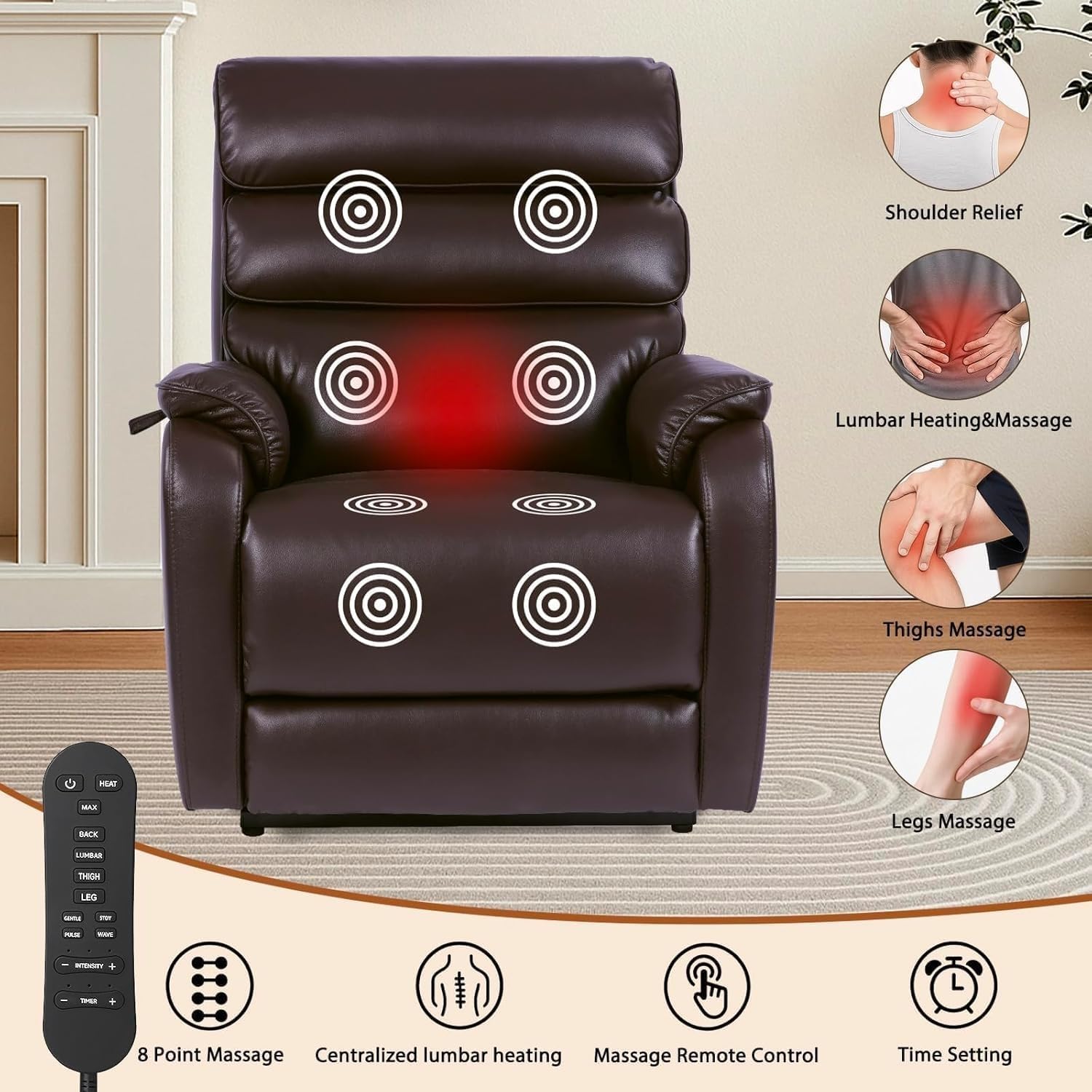 Upgrade your relaxation experience with the PU Leather Electric Power Lift Recliner Chair for Adults, designed to combine style, comfort, and functionality. Featuring a smooth power lift mechanism, this recliner makes it easy for seniors or individuals with mobility needs to stand up or sit down without strain. The adjustable backrest and footrest allow you to find your perfect seating position for reading, watching TV, or simply unwinding after a long day.Crafted with premium PU leather, this chair offers a luxurious look, exceptional durability, and easy maintenance, making it ideal for everyday use. Built-in side pockets and cup holders keep your essentials close at hand, whether it’s your favorite beverage, remote control, or reading material. Perfect for living rooms, home theaters, or entertainment areas, this recliner enhances any space with both comfort and convenience.