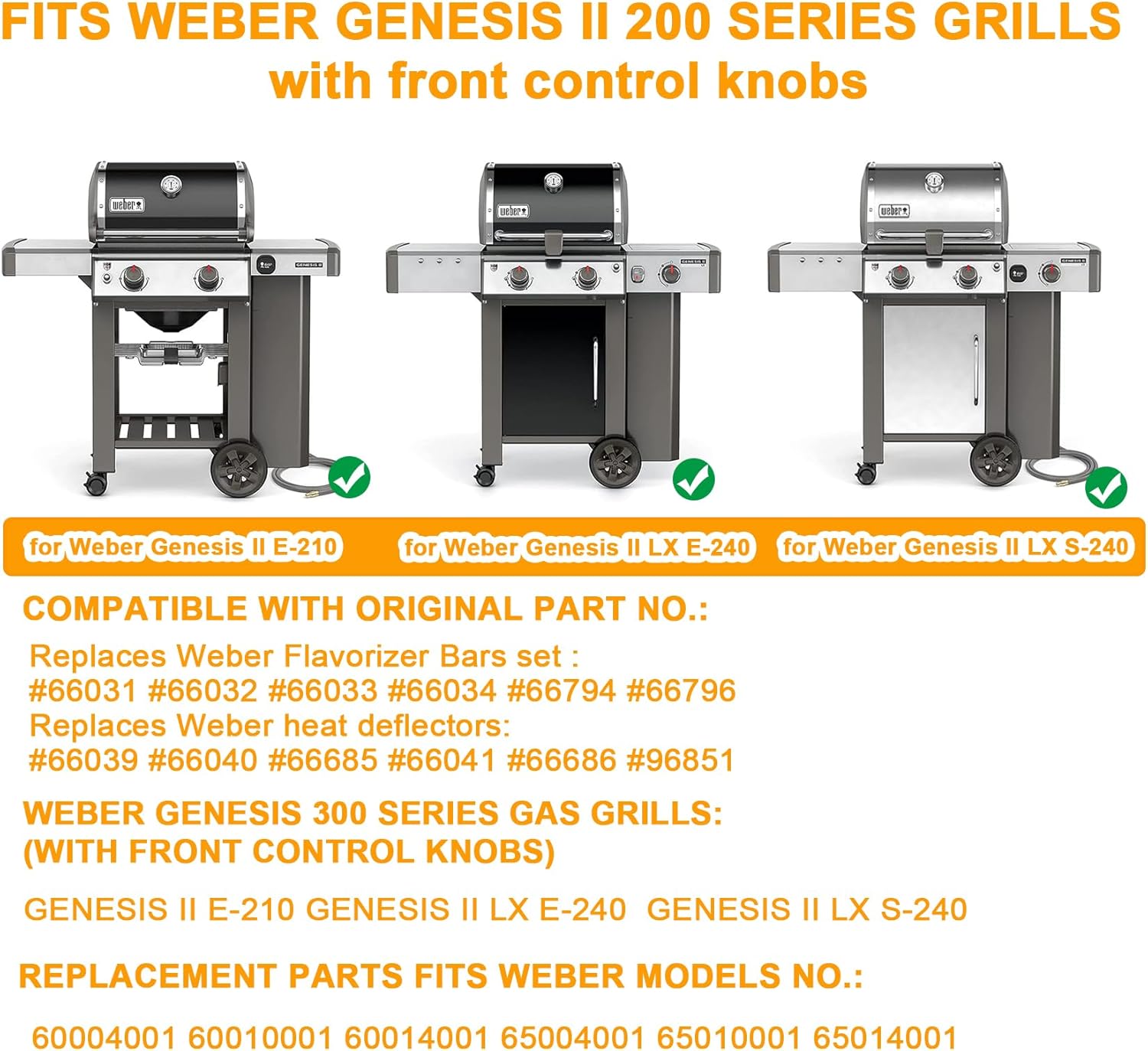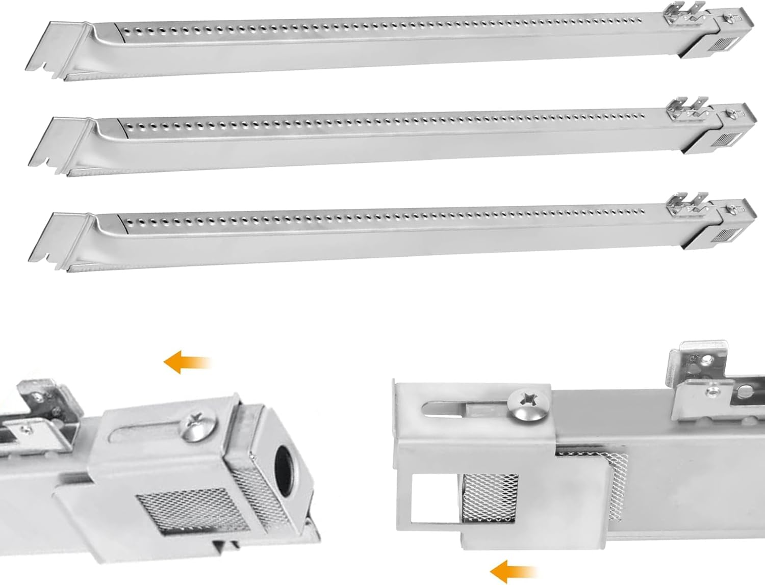 Safbbcue 7508 Grill Burner Tube, an ideal replacement for Weber Spirit 300 Weber Spirit E-310 S-310, Weber Genesis Silver B & C, Genesis Gold B, Weber Genesis Platinum B & C grillsCompatibility:Replacement parts for Weber Spirit 300 series with Side Control Panel, Weber Spirit E-310 S-310 E-320 S-320 (2007-2012) grills and Weber Spirit 700, Genesis Silver B & C, Genesis Gold B(2002 and newer models) & Genesis Platinum B & C series gas grills. FITS weber original part number Weber 3251398 3261001 3261398 3261411 3280001 3280009 3280201 3280699 3280901 3290001 3290009 3290201 3290699 3290901 3290999 3291001 3350698 3351398 4431301 4521001 4521301 4530401 4531001 6321309 6321398 6321411 6321898 6331001 6331398 6331499 6340001 6350009 671201 6728009 6731001 6731209 6731301 6731309 6731409 6731411 6740001 6750001 6750009 6750309 6770001 6780001 6780309 6820801 6821001 6821009 6821209 6821301 6821309 Specifications:Constructed from high-quality stainless steel, ensuring durability and longevity. Left and right Burner Dimensions: 28" Centre Burner Dimensions: 27 3/8" Crossover Tube Dimensions: 12 3/4". Features:Seamless fit for a hassle-free replacement. Effortless installation process, lasting results. Disperse flame evenly, resistance to rust and burn through. Exceptional durability for prolonged use. Revitalize your Weber spirit 300 Series, make you grill brand new again. Function You can cook food evenly all over the cooking grate because the burners are designed to carry a consistent gas flow throughout the grill. Heat and corrosion resistant, will not rust, and thicker and more durable, can effectively extend the service life. Note Make sure you measure the size and check the shape of your original parts and compare with ours before ordering. If you have any questions, please feel free to contact us, we will provide you with satisfactory solutions. Extend the life of your beloved grill with Safbbcue's premium burner tube.