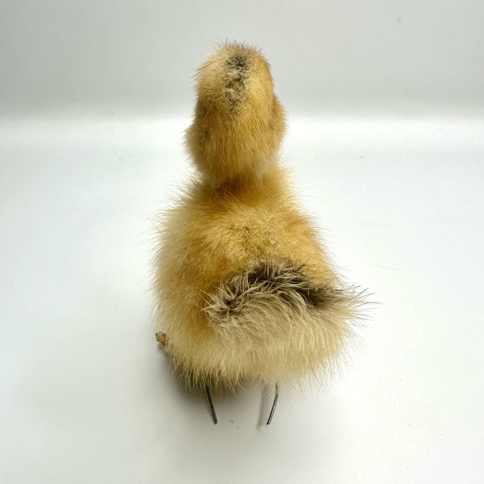 A soft and beautifully preserved real taxidermy duckling, perfect for collectors of natural curiosities, oddities displays, or educational purposes. This adorable yellow duckling specimen retains its fluffy down feathers and lifelike appearance, making it a charming and unique conversation piece.