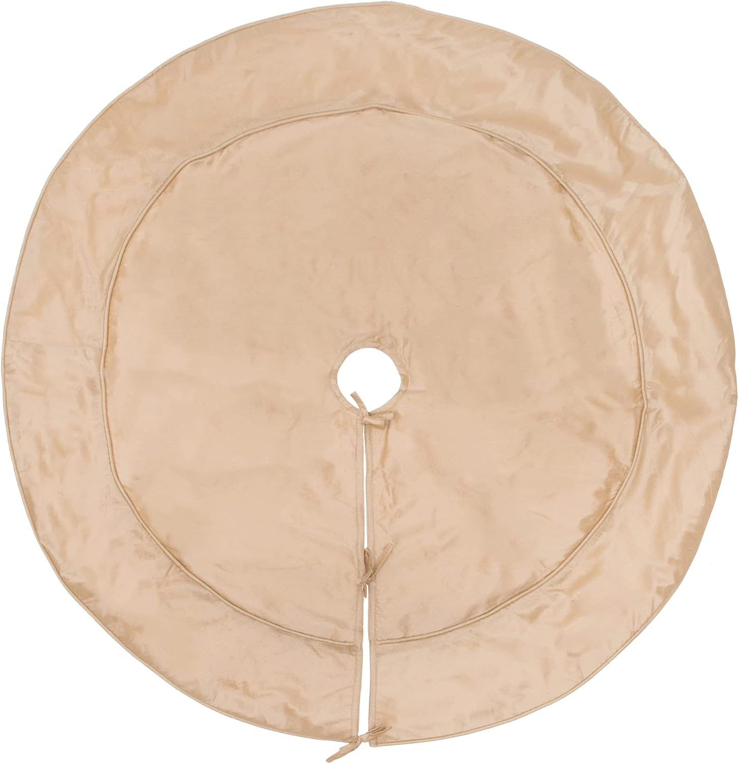 Vickerman 54" Gold Colorway Christmas Tree skirt. This polyester tree skirt measures 54 inches in diameter, features fabric tie closures, and is fully lined. This simple and elegant look brings a timeless holiday look.