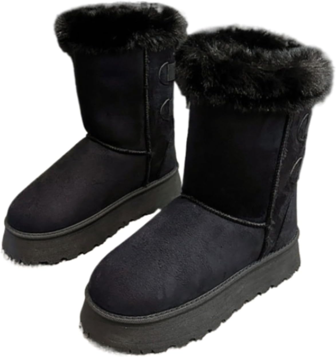Embrace winter in style and comfort with our Women's Platform Winter Boots, designed to keep you warm and fashionable during the coldest months. These suede snow boots feature a substantial 3-5cm platform sole that provides both height enhancement and practical elevation from cold surfaces. The elegant bow detail at the back adds a feminine touch to these functional winter essentials. Constructed from premium suede material, these boots offer durability and weather resistance while maintaining a soft, luxurious appearance. The interior is fully lined with plush faux fur that creates a cozy thermal environment for your feet, ensuring warmth even in freezing temperatures. The durable rubber outsole features reliable traction patterns that grip securely on snow, ice, and wet surfaces, providing confidence with every step. The easy slip-on design allows for quick wearing, while the high shaft design offers additional ankle coverage and protection from cold winds. Product Features:Upper Material: Quality SuedeLining: Plush Faux FurSole: Durable Rubber with 3-5cm PlatformInsole: Wool-like MaterialToe Shape: RoundedClosure: Slip-On with Back Bow DetailShaft Height: High TopHeel Height: 3-5cm PlatformWinter Performance:Thermal insulation for cold weatherSlip-resistant sole for snowy conditionsComfortable for extended wearSuitable for various winter activitiesEasy to maintain and cleanCare Instructions:Brush suede with soft brushSpot clean with damp clothAir dry away from direct heatUse suede protector sprayStore in cool, dry place