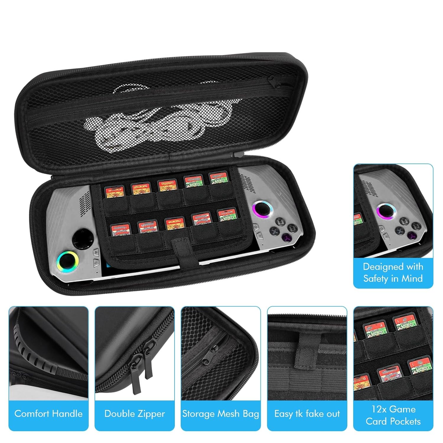 Handbag for ROG Ally, Carrying Case Storage Bag for Console and Accessories, EVA Hard Case Product parameters: Material: EVA + artificial leather Color: black Compatible with: for ROG Ally Size: 30 * 13.5 * 5cm / 11.8 * 5.3 *1.9inch Weight: 240g Product List: 1 * Storage bag